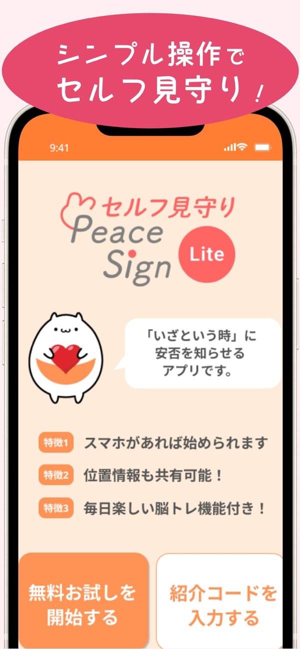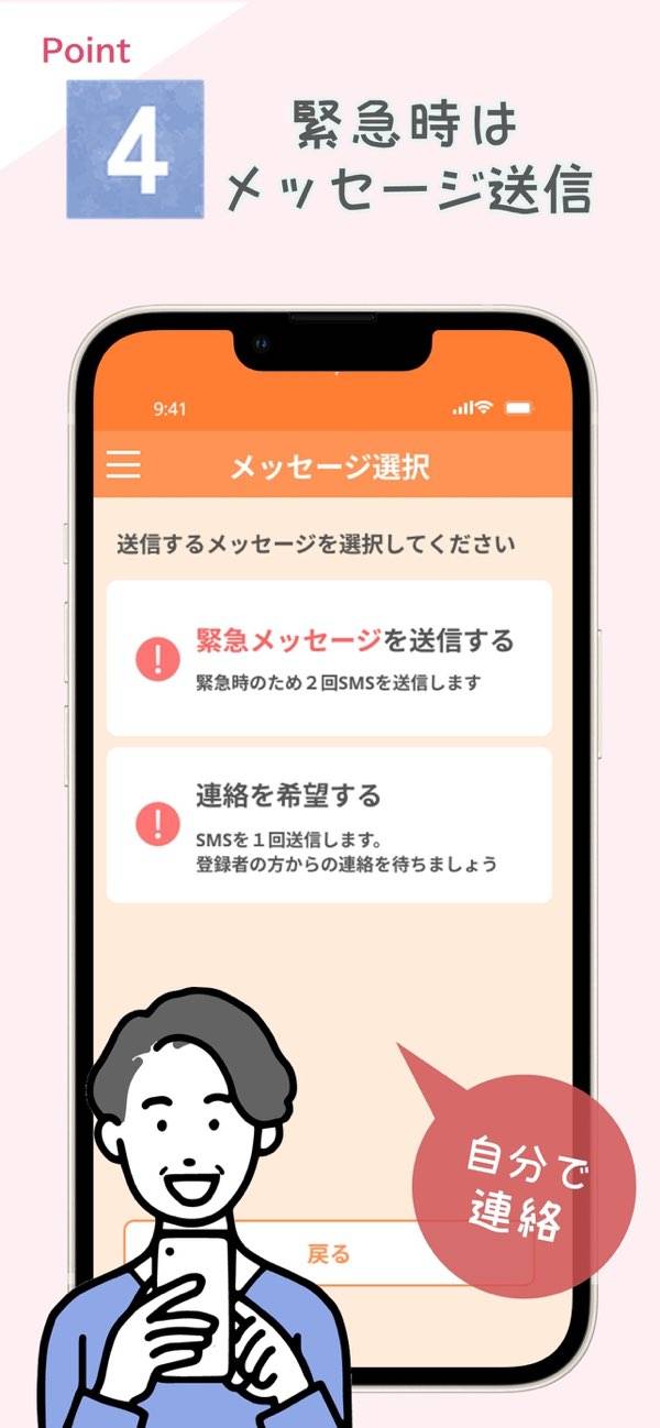 - 一定期間の未反応で、連絡先へ自動でお知らせ。位置情報も一緒に伝わる