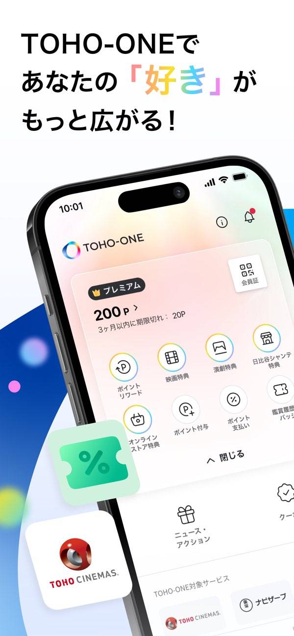 東宝系エンタメの情報収集と会員機能がまとまったアプリです。映画・演劇・イベント・関連グッズのニュースをメインに掲載。くわえてデジタル会員証の提示、ポイント残高の確認と利用、会員限定クーポンの取得などが一通りそろっています。
