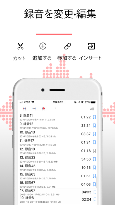 - 秒数を指定して、録音データのトリミングやカットといった編集ができる