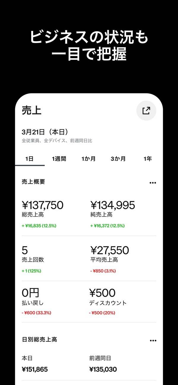 決済の履歴や売上のレポートを表示し、ビジネスの状況を把握。改善策も立てやすくなるでしょう。さらにスタッフや顧客管理もできるなど、ショップの運営をサポートする機能も充実しています。