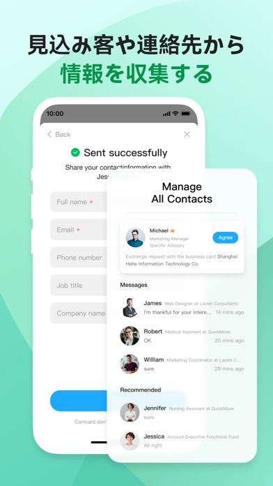 自分の所属や電話番号を登録し、デザインを選んでアプリ内に名刺を作成。本アプリを使っている相手と、二次元コードを介して送受信できます。名刺交換もアプリだけで済ませられ、お手軽に保管できるでしょう。