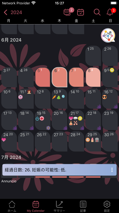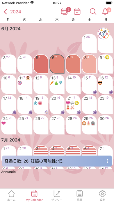 本アプリは、自分の月経周期と期間を予測してくれます。また、過去のデータをもとに期間や排卵日を予測する機能も。これにより、自身の体調変化のパターンを把握しやすくなり、月経痛の予防や妊娠計画に役立てることができます。