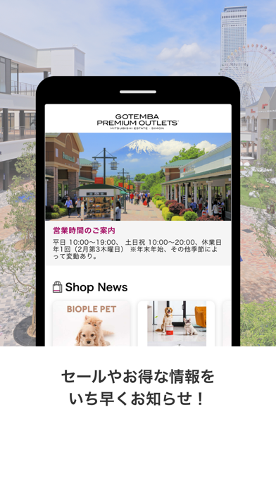 - 全国のプレミアム・アウトレットのお得な情報をスマホから閲覧できる