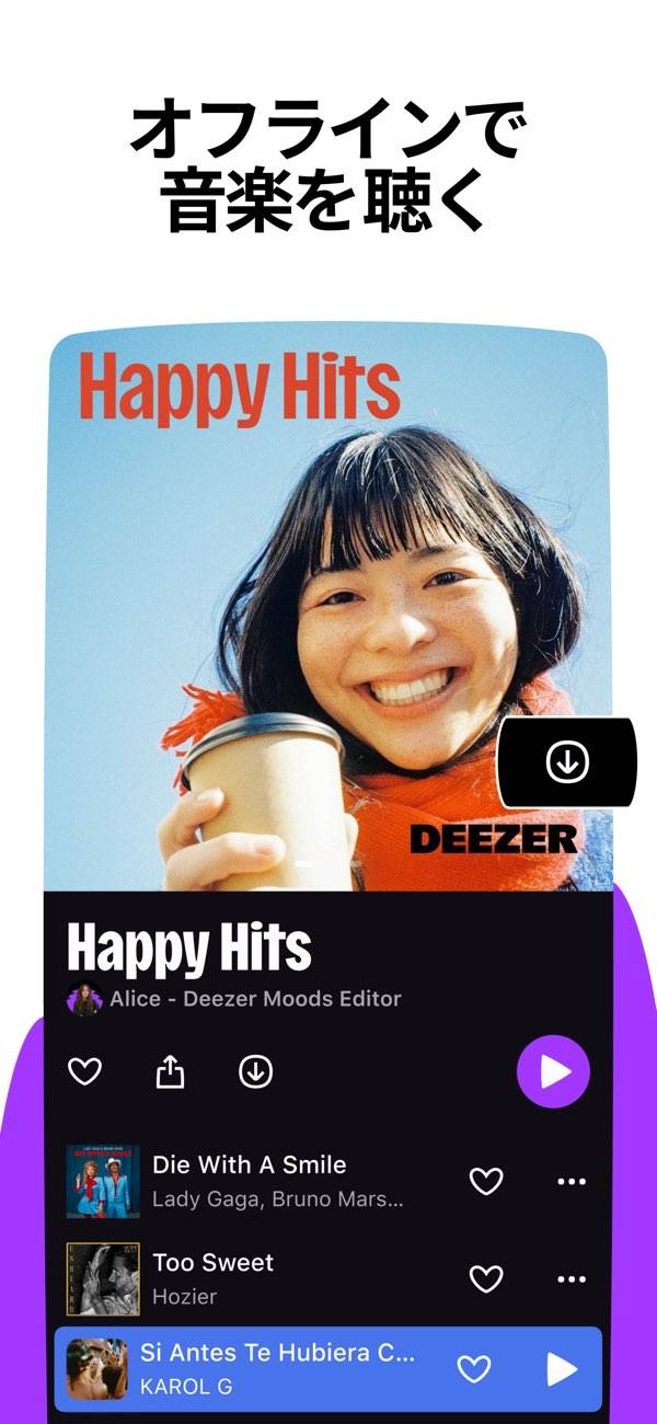 - オフライン再生できるため、高い音質で聴いても通信量を節約できる