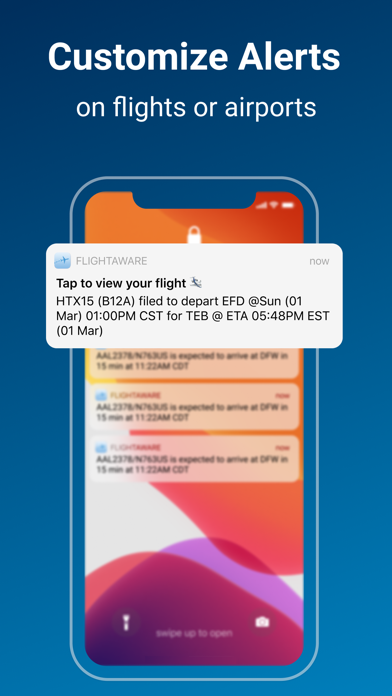 出発・到着予定、ゲート変更、目的地変更、遅延などの通知を自動で受け取れます。追跡したいフライトを登録しておけば、変更があるたびにプッシュ通知が届くため、搭乗前に空港で慌てる心配がありません。手動で確認する手間が省けるので、スケジュールが詰まっているときでも安心。