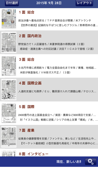 日報の紙面をPDF形式でスマホから閲覧できます。紙のレイアウトそのままでありながら、紙と違ってかさばらないのが強み。ネットニュースより紙の新聞派という人には特に使いやすいアプリといえます。特にタブレットだとより紙に近い感覚で読めます。