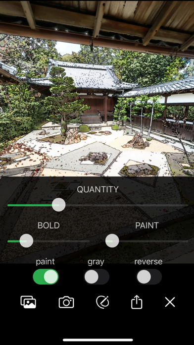 写真が鉛筆で描いたような線画風にできるカメラアプリ。白黒反転や線の太さも変えれて自由度が高い。加工の調整次第で漫画の色付け前のような写真になるので、背景を自分で塗ったり他の写真と合わせるとかなりオリジナリティ溢れる写真が作れます。