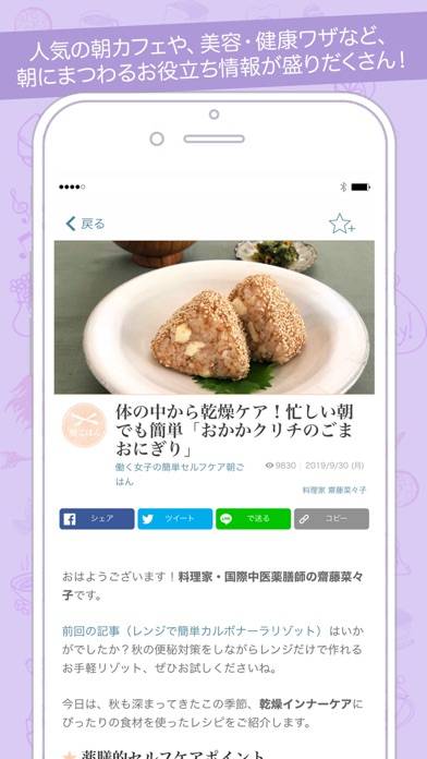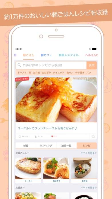 本アプリは朝ごはんのレシピや朝の美容情報などが読めます。気に入ったレシピや後で読み返したい記事を、お気に入り登録することでリスト化可能。また検索機能では、人気のキーワードからレシピや記事をすぐに見つけられます。本アプリのレシピや記事を読むことで、朝の時間が充実するはずです。