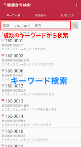 ▲「東京」「千葉」などキーワードを入力すると、該当する郵便番号がズラッと並ぶ。