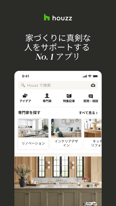 住まいづくりに必要な情報がすべて揃ったアプリです。世界中の2,500万枚以上のおしゃれな住まいの写真から、自分だけのインテリアや間取りのアイデアを見つけ、保存できます。また、専門家と直接つながり、理想の家づくりを実現するお手伝いをしてもらうことが可能です。