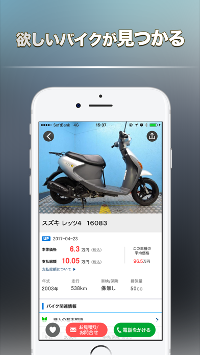 - バイクの検索から見積もり依頼までをシームレスに行える