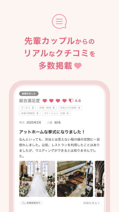 また結婚に役立つ記事やコラムも掲載されているので、結婚式の準備や指輪選びなどの参考になります。これから結婚を考えている人は入れておくといいでしょう。