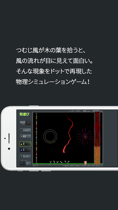 アイコンを見てパズルゲームかと思いダウンロードしましたが、ドットを火や水、火薬、金属、植物、動物に見立てて「現象を再現」するシミュレーションアプリでした。