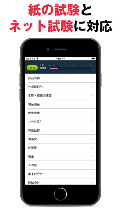 - 商業簿記2級の試験に向け、テストや分野別練習ができる対策アプリ