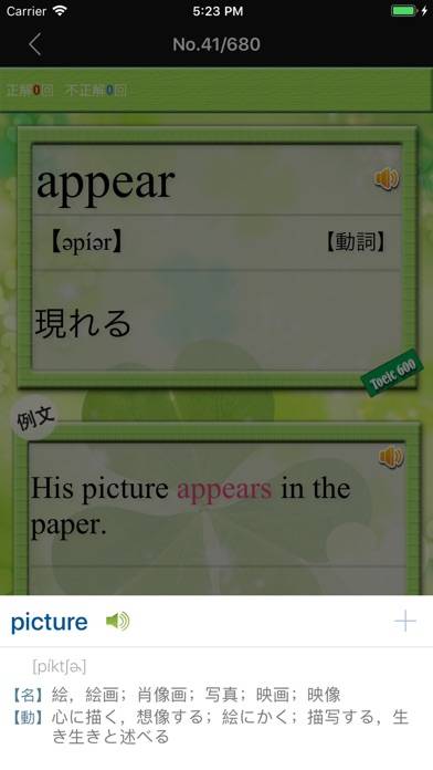 テスト中に一時停止やリトライが可能で、間違えた英単語だけを再びテストできます。単語一覧はキーワード検索ができ、学習したい単語を簡単に見つけられます。単語カードには英語の発音と例文も含まれているため、実際の使い方を理解しながら覚えられるでしょう。