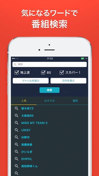 芸能人の名前やキーワードで番組を検索出来るのが良いですね!お気に入り登録が可能なので管理もしやすいです。