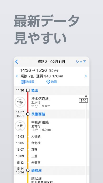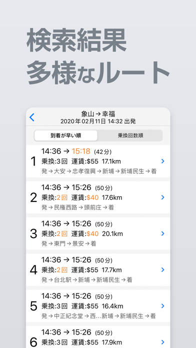 - 日本語対応。出発地と到着地を入力すれば台北の最適な移動経路がわかる