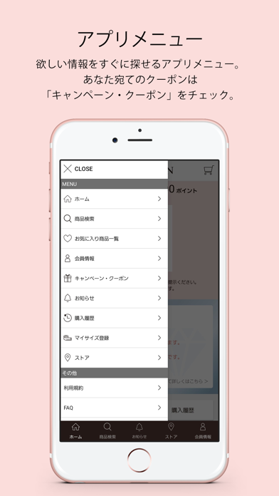 - 購入履歴から自分のサイズを登録可能。毎回の買い物がスムーズに