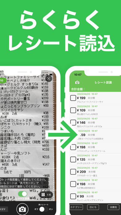 | レシート読み取り | 無料:広告視聴で3時間利用 有料:無制限 |