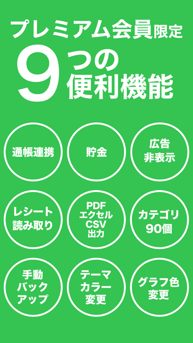広告なし、CSV・excel出力、クラウド保存、月次レポート、カラー変更など