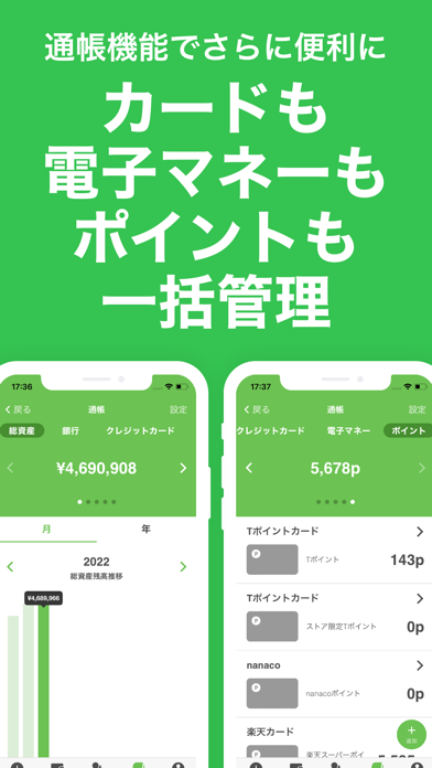 | 自動連携 | 銀行、カード、電子マネー、ポイント(有料) |