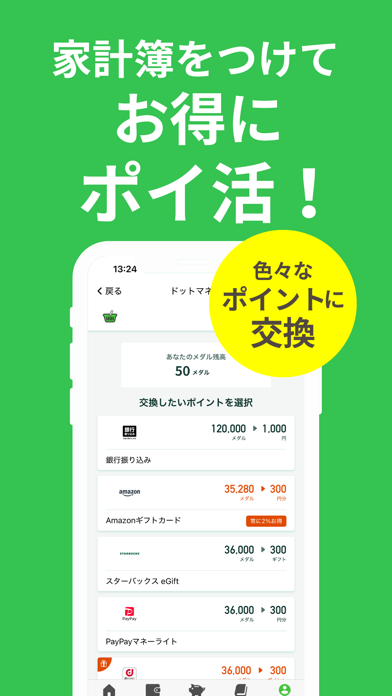 | 連携可能なポイントサービス(一例) | 楽天スーパーポイント、dポイント、Tポイントカード、JALマイレージバンク、ANAマイレージクラブ、ヤマダポイント、JREポイント (My JR-EASTログイン)、リクルートポイント、永久不滅ポイント(セゾン)、ETCマイレージサービスなど |