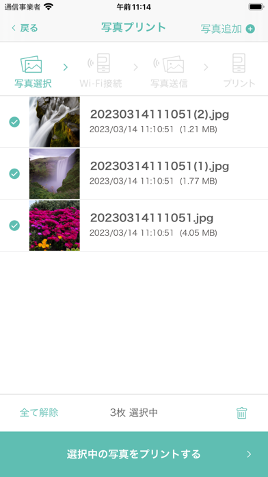 印刷したいファイルが複数あっても、JPEG・PNG計50件、PDFは最大20件まで一度にアプリに登録可能。合計サイズは最大100MBまで送信可能なので、何回もコピー機とやり取りしなくても効率よく印刷が進みます。学習プリントや仕事の資料など、まとめて印刷したいときにもぴったりです。