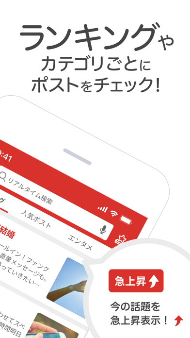 多くの投稿がある話題や注目のニュースをランキング形式でまとめて表示。ランキングはほぼリアルタイムで更新されるため、いつでも最新のトレンドを把握することが可能です。自分の関心に合った情報をすばやく得られ、暇つぶしにも役立ちます。