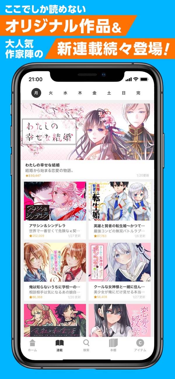 毎日新作の漫画が無料で楽しめるスクウェア・エニックスの漫画アプリです。多数のオリジナル作品や人気作家の新連載が掲載され、待つと無料で読める機能を搭載しています。