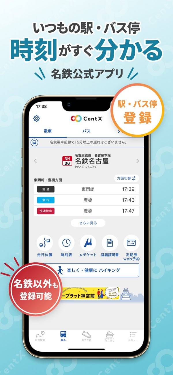 鉄道やバスなど、いろんな移動手段をまとめて調べられるアプリです。住所やスポット名、地図上の地点をもとに、鉄道・バス・タクシー・カーシェアなどを組み合わせたルートを検索できます。名鉄ネット予約やタクシー配車とも連携していて、きっぷの購入や乗車までスムーズ。毎日の通勤通学はもちろん、休日のおでかけにも便利に使えます。
