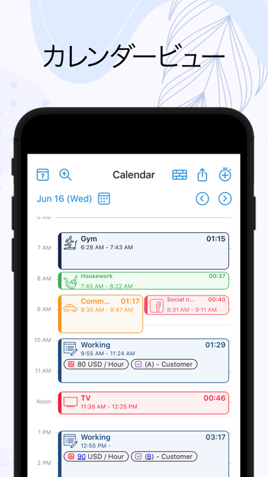 タスクにかかる時間を1タップで計測開始できるアプリ。新規タスクの登録や予約はもちろんのこと、カレンダーでいつ何をしたかがひと目でわかるのも魅力。また、期間を指定して、どのタスクにどれくらい時間を使っているかを可視化できます。