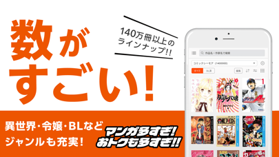 | 読み放題の漫画数 | 読み放題140,000冊以上 |