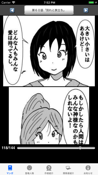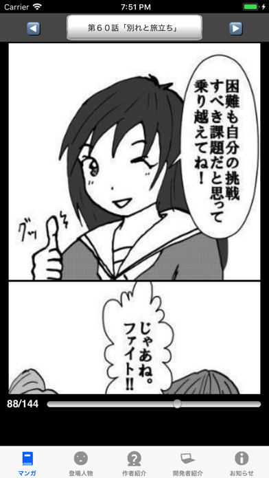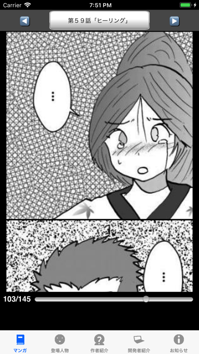 本アプリは縦スクロールの電子書籍ビューアで読むことができます。4コマ漫画のように1コマ1コマ先送りできるので、大事なシーンを見逃さず物語に没入できるでしょう。また下部のスライドバーを動かして、読みたいページに手軽に移動することも可能です。