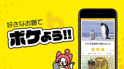 ネット上でも人気の「ボケて」の公式アプリ。お題の写真に対して一言を添える、大喜利の定番をみんなでやっちゃおうというサービスです。