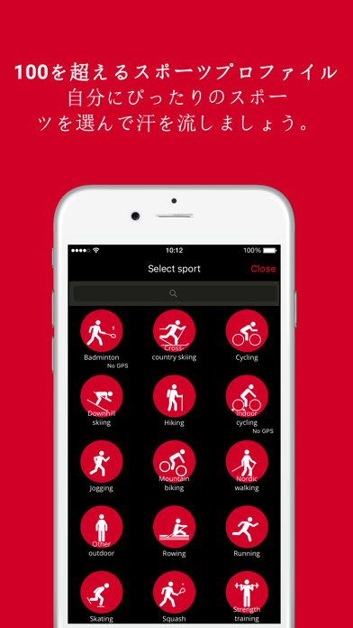 ホーム画面には余分な情報はなく、すぐに運動を始められるようになっています。「ジョギング」、「筋力トレーニング」などの運動を選び「開始」をタップすれば計測開始。操作的にも思考的にも、すぐ運動に意識を向けられるシンプルさが魅力です。