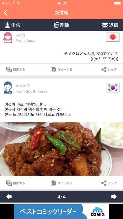 このアプリケーションの売りの一つの翻訳機能ですが、あえて使わずに英語の勉強をかねて自力で作文してみるのもおすすめです。また、それがしっかりと伝わり返信して頂けると、自身に繋がります。
