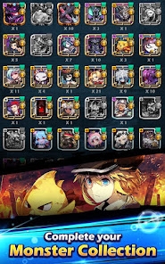 ▲モンスターと協力し、連続タップで敵を倒していく。倒すともらえる宝石でプレイヤーの強化ができる。