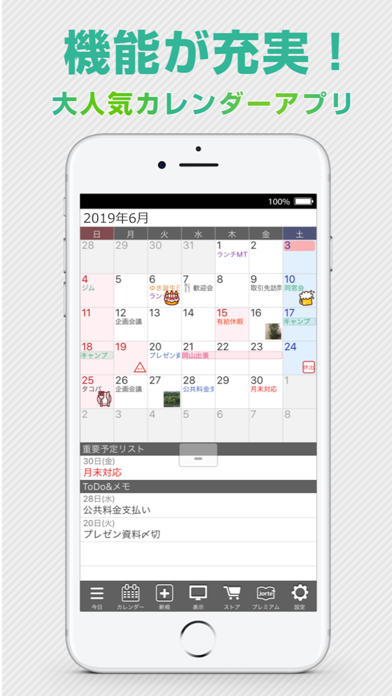 手帳のような使い方をしたかったので、視覚的に一番近いものがジョルテでした。以前はエクスポート用にデータを出力できたのですが、最近はできなくなって残念です。Googleカレンダーなど他と連携できたり、ToDoリストでやることをメモできる点も気に入っています。