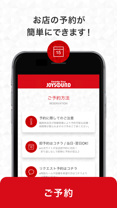 - JOYSOUNDの来店予約や店舗検索をスマホから行えるアプリ