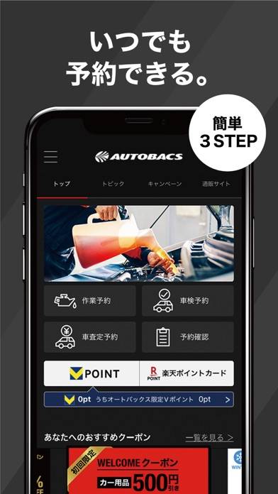 アプリ会員限定のお得なクーポンが定期的に配信され、メンテナンス費用を節約できます。オートバックス会員証やVポイント、楽天ポイントもアプリから利用可能。店舗検索機能で最寄りの店舗を簡単に見つけられ、セールチラシや公式通販サイトへも簡単アクセスできます。