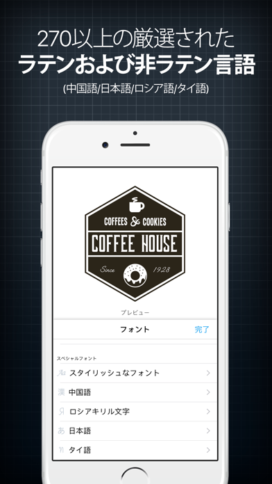 - 文字やデザインを選んで、簡単操作でおしゃれなロゴが作れる