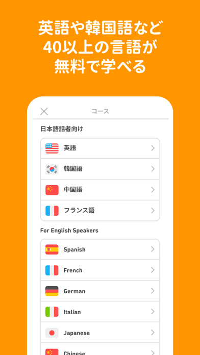 日本語話者向けの各種コースが用意されています。日本語話者向けコース、とは母国語が日本語の人に向けた言語学習カリキュラムのこと。英語話者向けのコースは40以上、日本語話者向けのコースは11つ(8言語+音楽・数学・チェス)です。