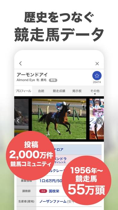 中央所属馬のみならず、地方所属馬の競走成績から海外馬の情報まで網羅されており、とても便利で使い勝手も最高です。それぞれの競走馬の掲示板が個別に設けられているので、不特定多数の方の予想コメントや応援コメント、マニアックな情報を得られる点も面白いです。競馬好きな方にはとてもおすすめのアプリです。