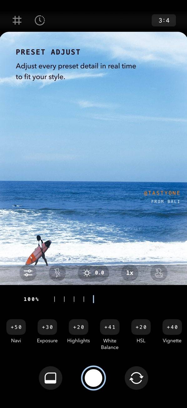 100種類以上のフィルターを備えたカメラアプリ。ごちゃごちゃした加工機能は要らないと思っている人にはおすすめ。見た目もすっきりしているので、男性も違和感なく使えるはず。