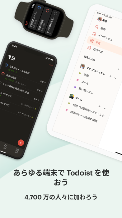 - すべてのデバイス間でToDoリストを同期する事ができる