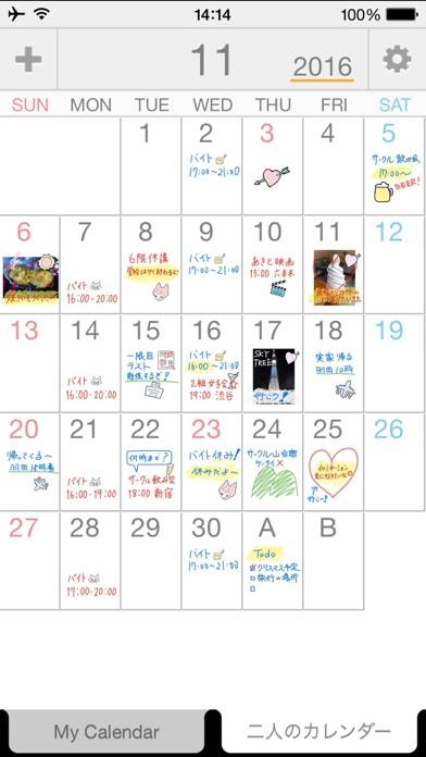 絵日記のように書き込める手軽なカレンダーアプリ。カラーやブラシ・写真・スタンプなどを使って、予定を追加できます。