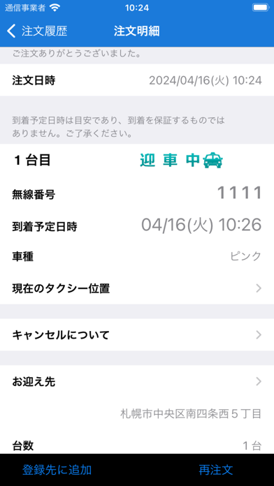 - 呼び出し場所や目的地を設定。ドライバーとのやり取りを少なくできる