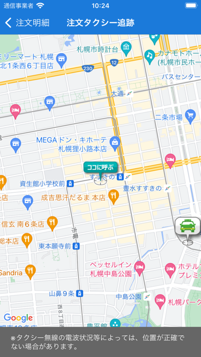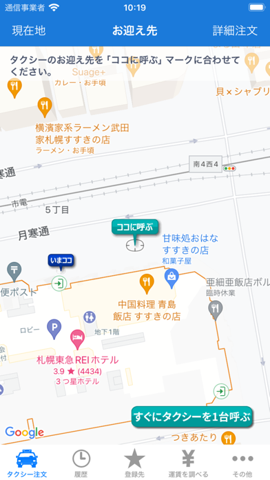 ▲マップ上に乗車位置を指定する。マップの読み込みに時間がかかるので、電波状態の良い場所で使おう。