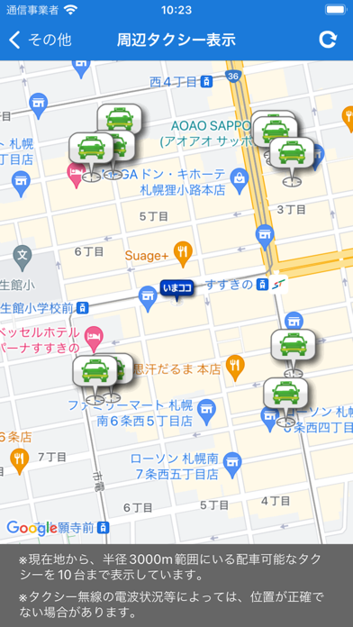 - 半径500m以内にいるタクシーがわかる。近くを通るかわかりやすい