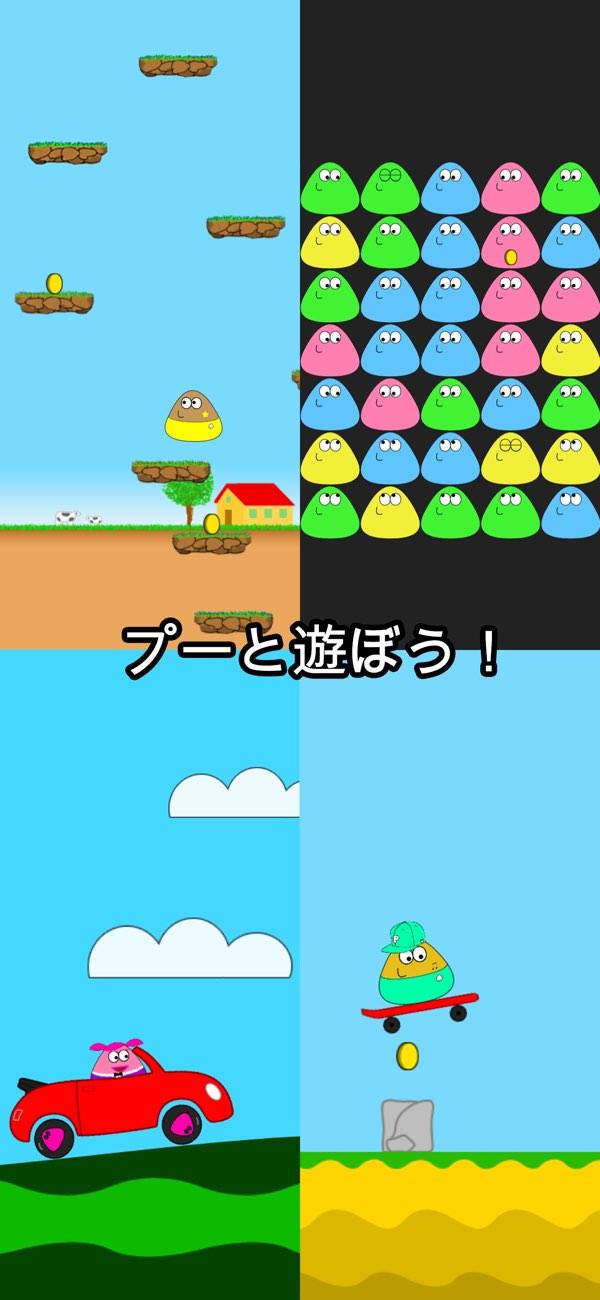 不思議なペットのプーをお世話できる、子供向けのゲームアプリ。食べ物をあげたりお風呂に入れたりと、簡単な操作でプーとの交流を楽しめます。さらに30種類以上のミニゲームもあり、飽きずに長く遊べるでしょう。